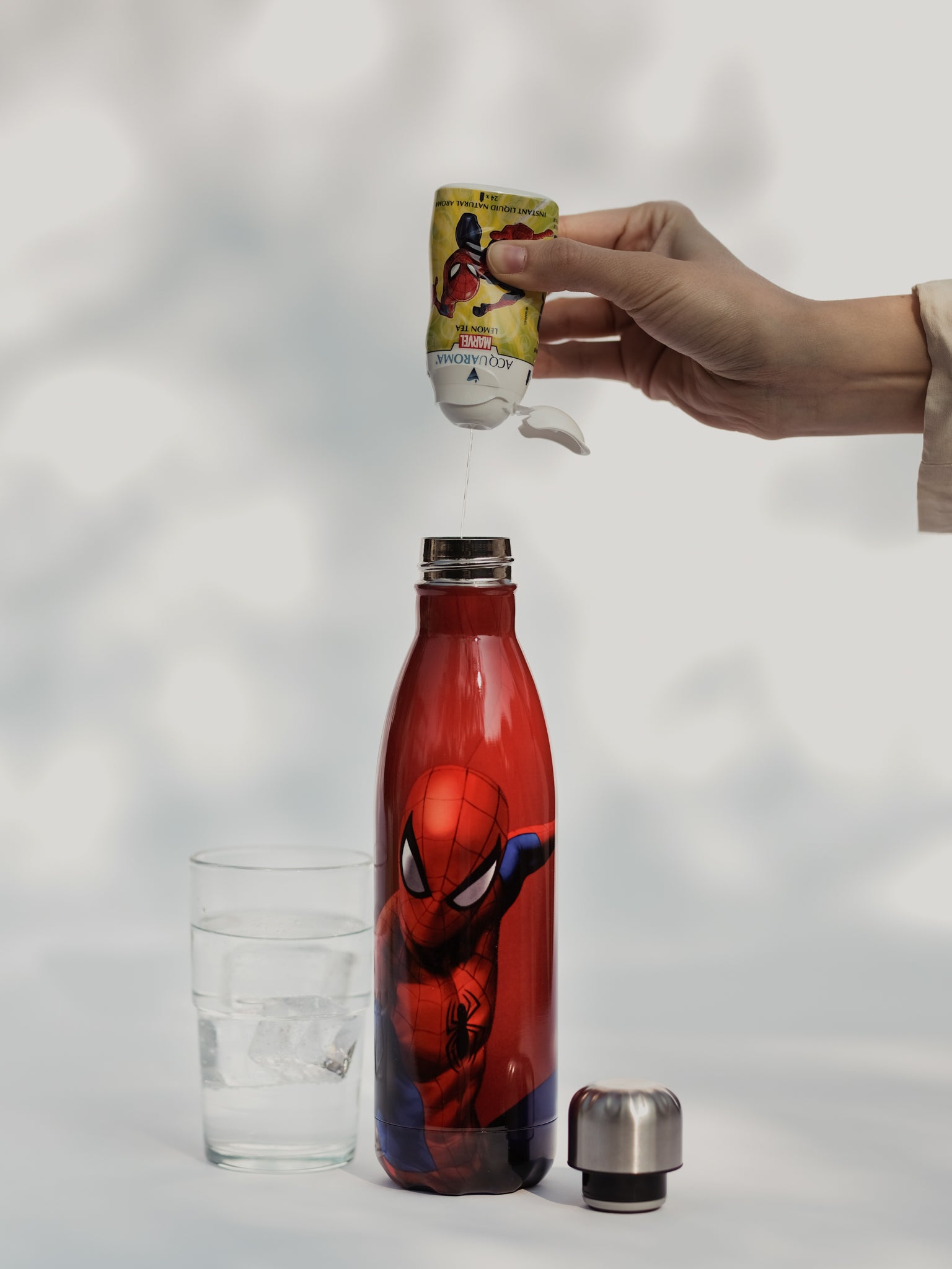 Enhance the taste of water with Acquaroma's natural Lemon Tea flavour, free of sweeteners, calories and dyes. ACQUAROMA Lemon Tea - MARVEL Collection is the first theine-free natural aroma. With the design of MARVEL characters Acquaroma makes drinking water more fun for everyone. Just one SQUEEZE releases the unique taste of lemon tea into water: enjoy a refreshing, full-flavoured beverage at any time of the day!