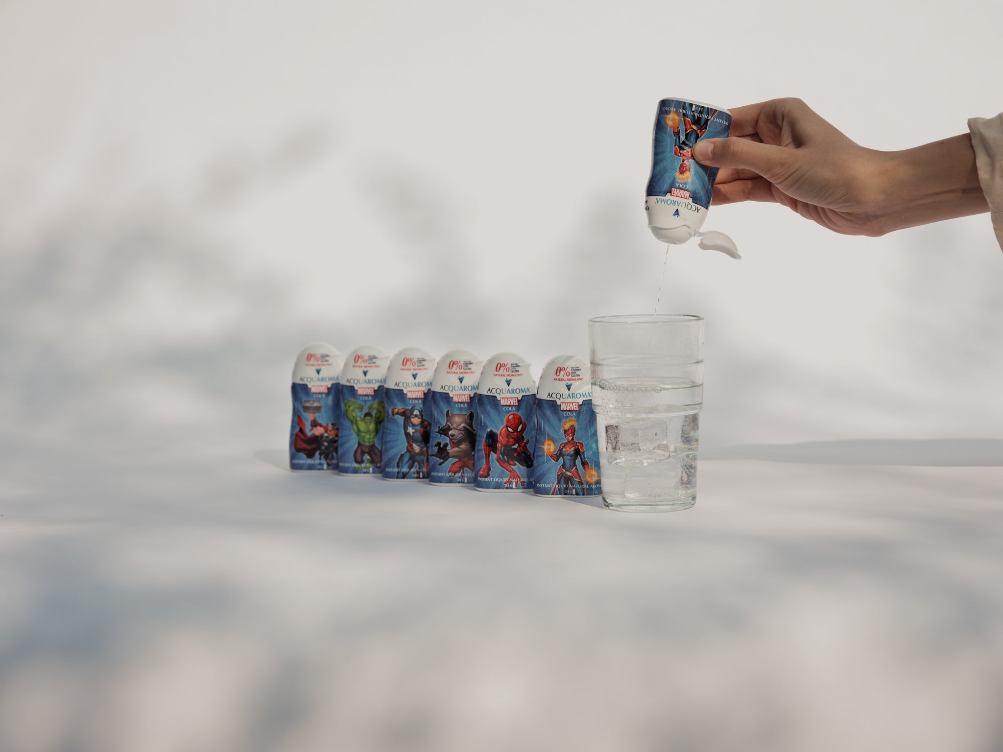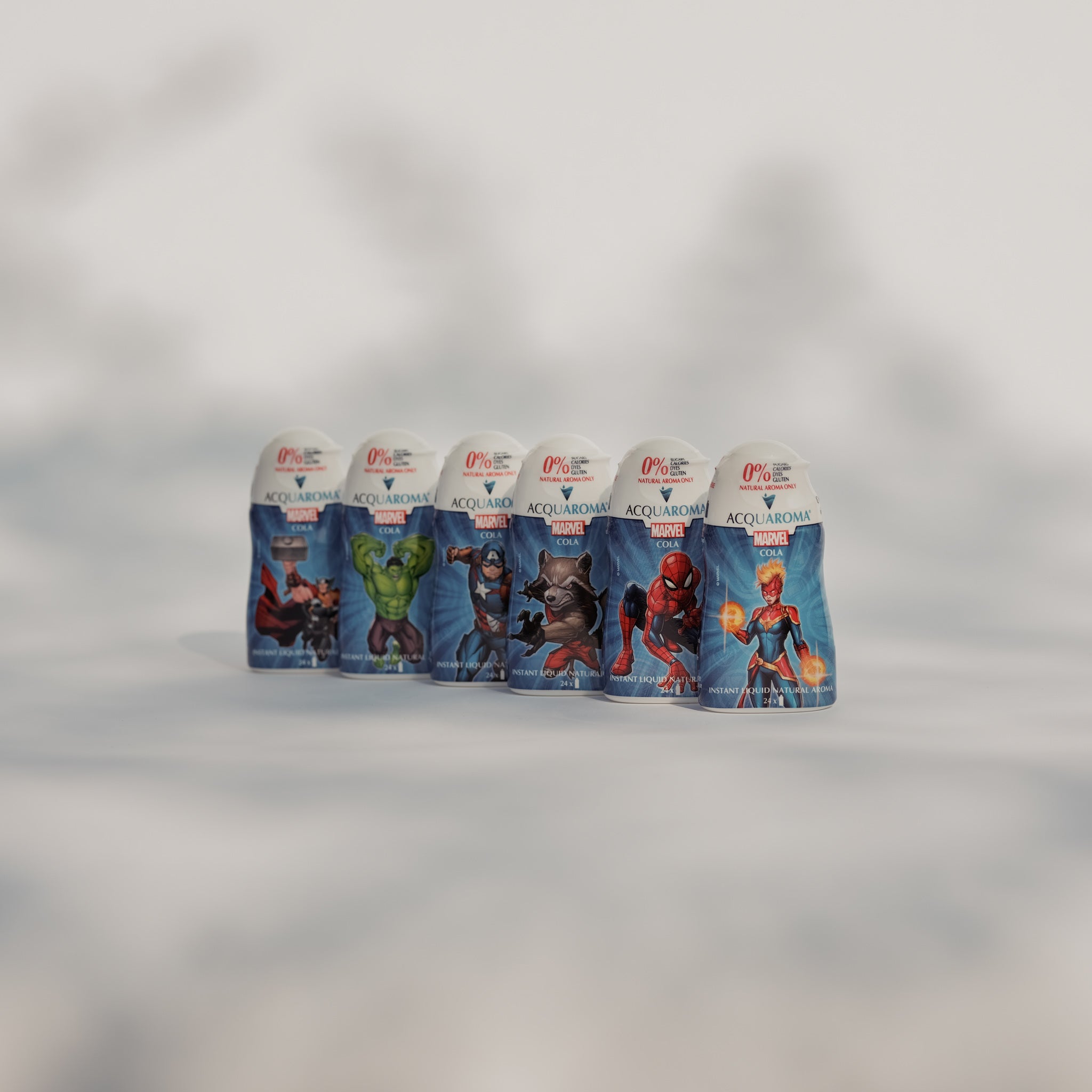 Gli aromi ACQUAROMA sono la soluzione ideale per incoraggiare ragazzi e non solo a bere più acqua! Scopri il primo aroma naturale al gusto Cola senza caffeina, senza dolcificanti, senza coloranti e senza calorie con il design dei personaggi MARVEL.